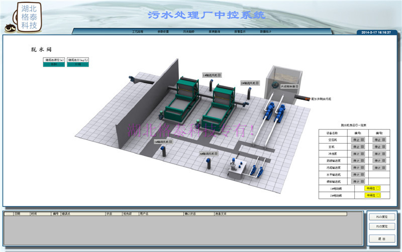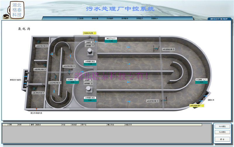 将整个污水处理厂的工艺参数、设备状态集中送入PLC控制柜,同时将PLC控制指令发往给设备就地箱。然后通过以太网将PLC与中控室的上位机连接通讯。